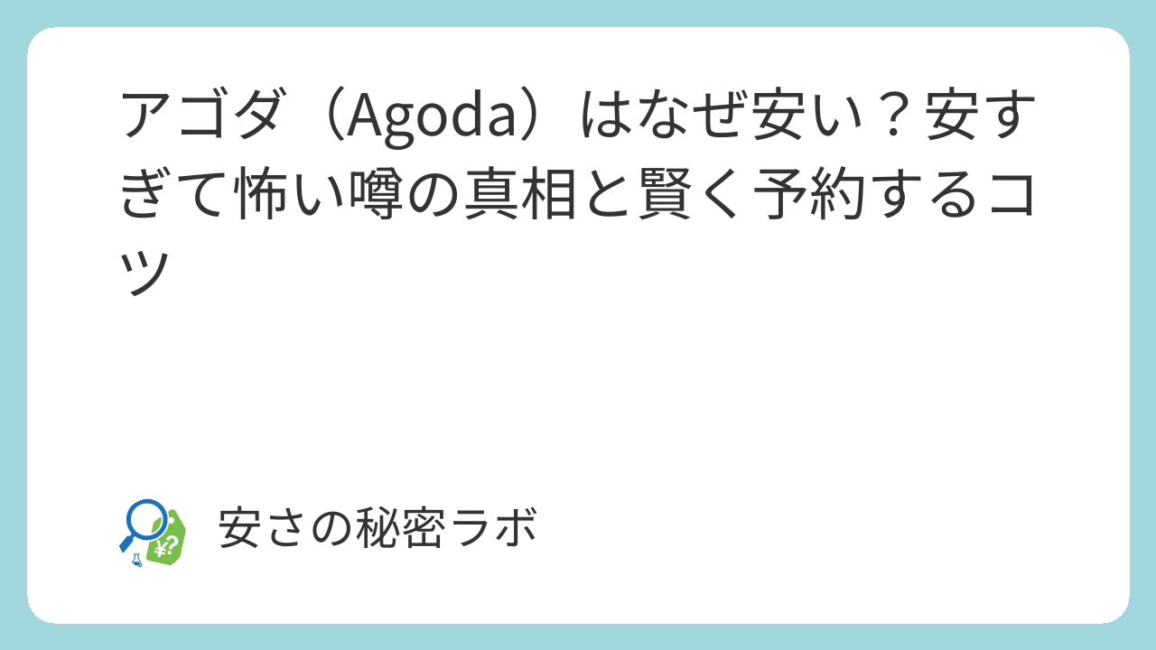 ホテル予約サイトを比較していると、他のサイトに比べて圧倒的に低い価格を表示する「アゴダ(Agoda)」。あまりの安さに「本当に予約できているのか」「当日ホテルでトラブルにならないか」と不安を感じ、決済をためらってしまった経験はありませんか?