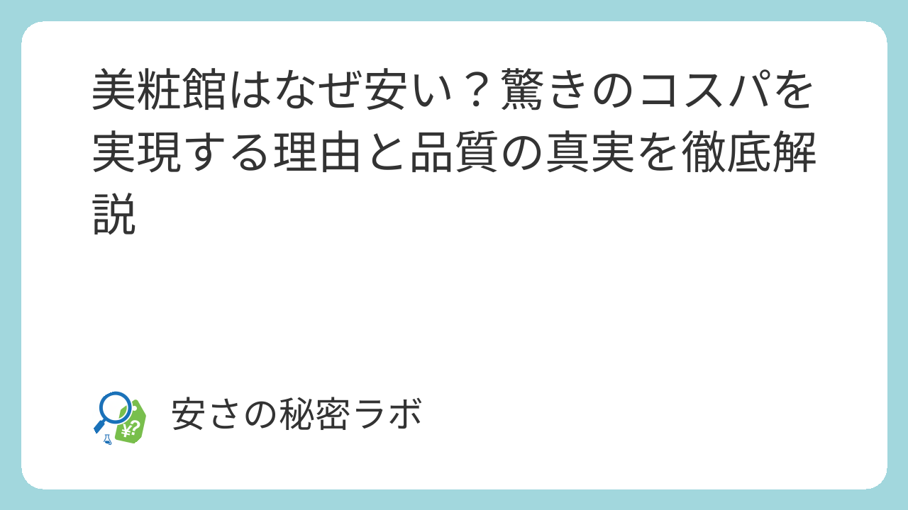 結論から申し上げますと、美粧館が安いのは「質が低いから」ではなく、徹底したオペレーションの効率化と、地域密着型のビジネスモデルを確立しているからです。