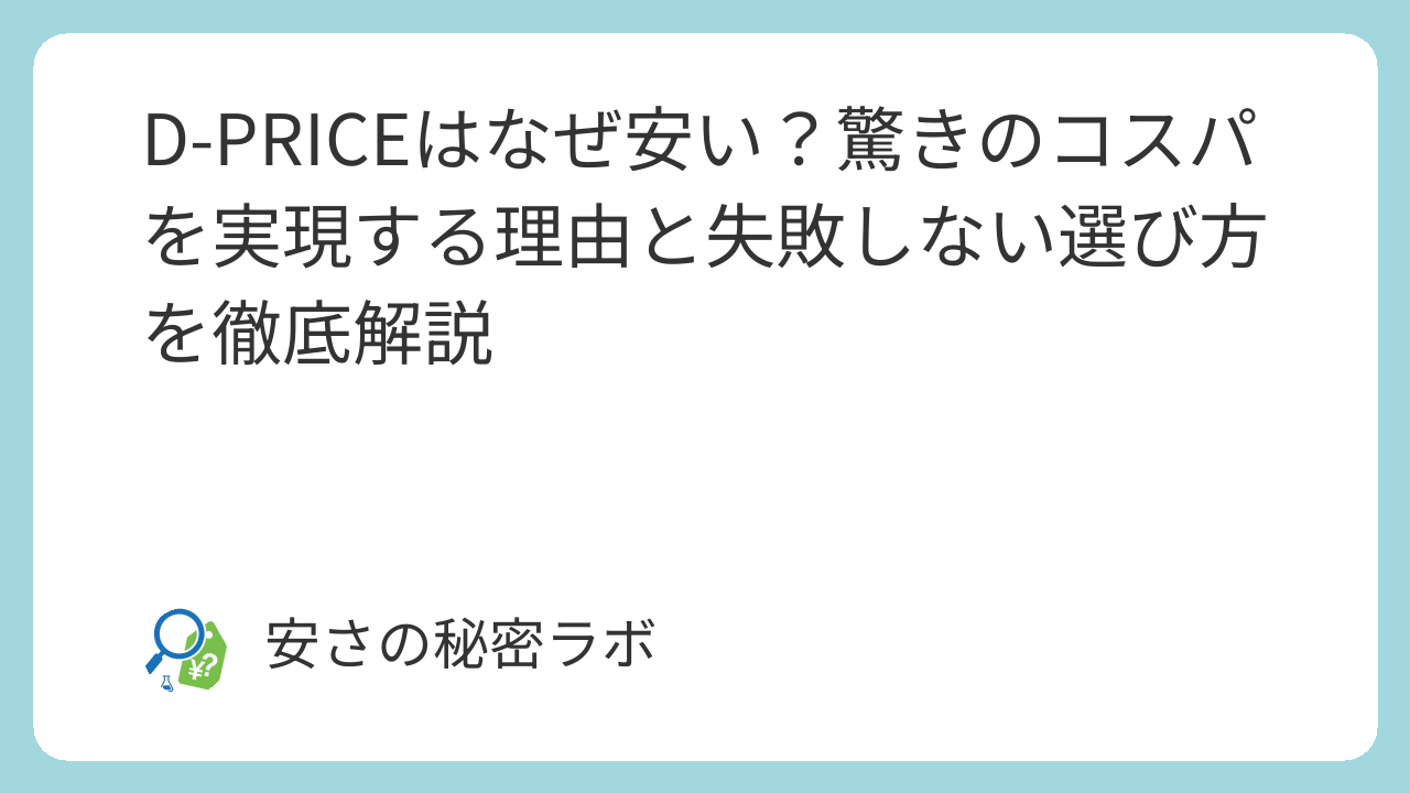 D-PRICEがなぜこれほどまでに安いのか、その理由は以下の3点に集約されます。