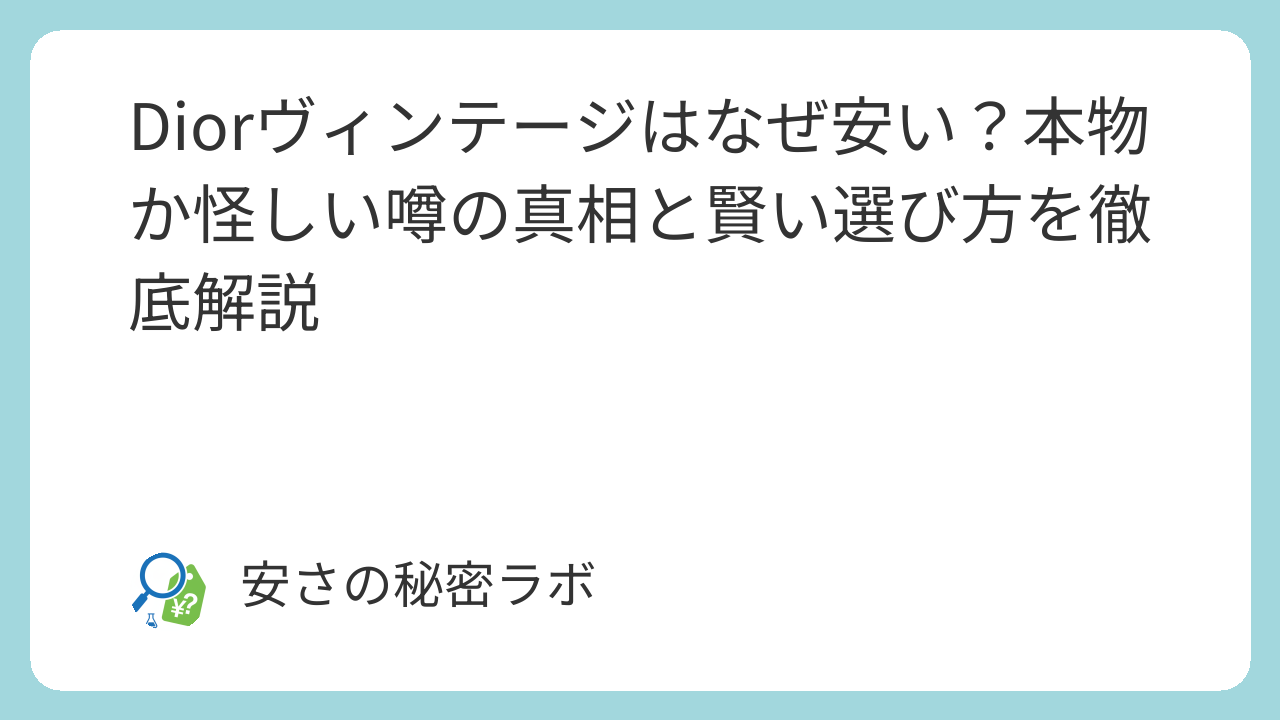 Diorヴィンテージはなぜ安い?本物か怪しい噂の真相と賢い選び方を徹底解説