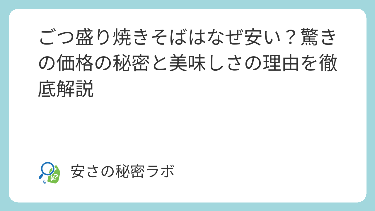 ごつ盛り焼きそばはなぜ安い?驚きの価格の秘密と美味しさの理由を徹底解説