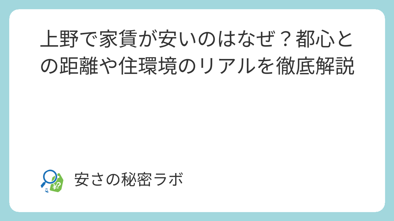 この記事では、上野周辺の家賃がなぜ比較的安く設定されているのか、その背景にある地理的な特性や住環境のリアルを徹底解説します。家賃の安さの正体を正しく理解することで、利便性と予算のバランスが取れた、あなたにとって理想的な住まい探しができるようになりますよ。
