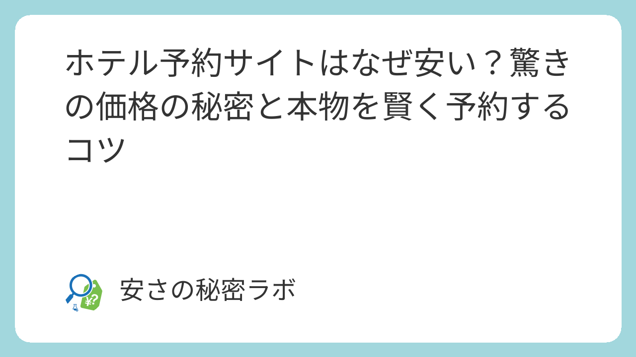 「1円でも安く泊まりたい」という願いと「快適な旅にしたい」という希望を両立させるためには、予約サイトの安さを活用しつつ、公式サイトの特典もしっかり比較することが重要です。この仕組みを理解して、次の旅行は最高に賢い予約を叶えてくださいね。