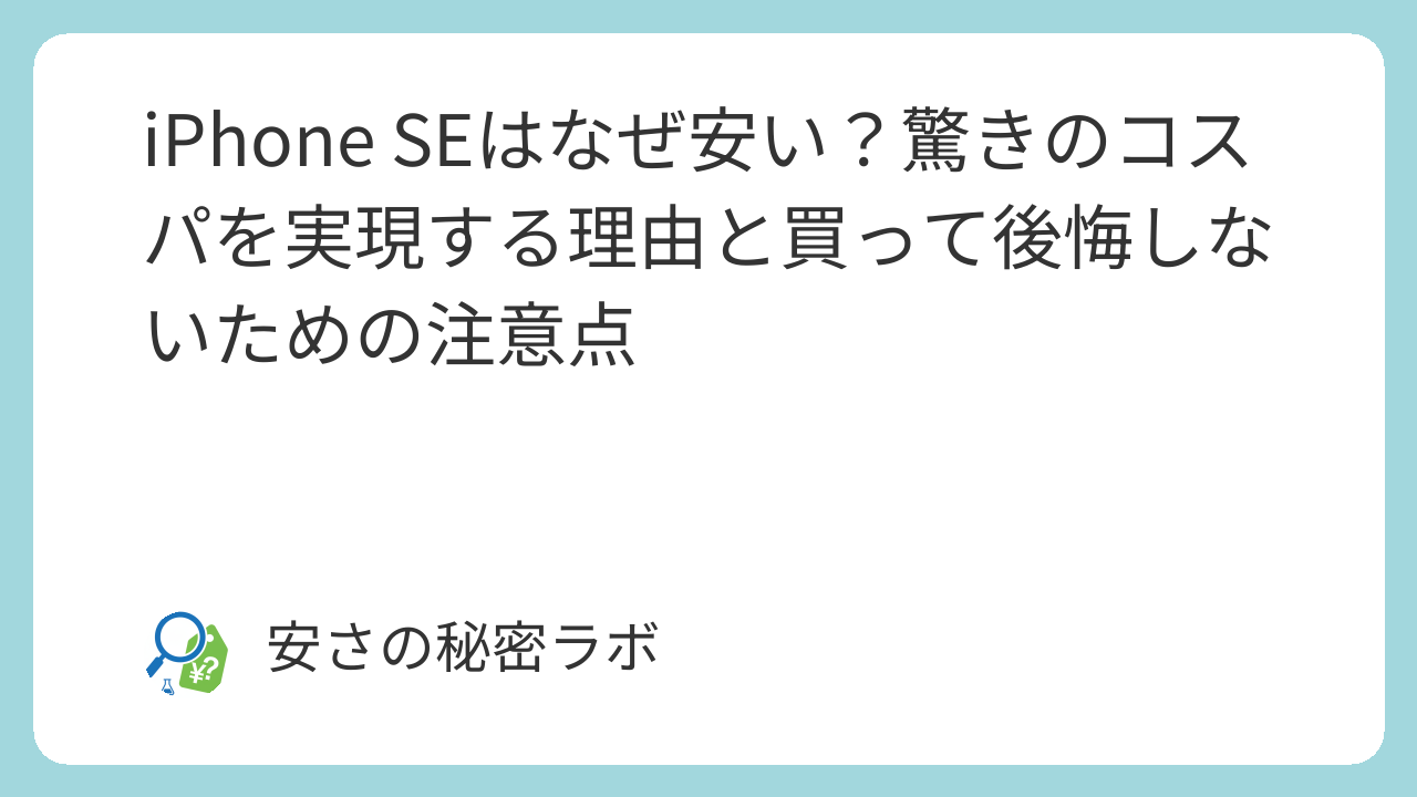 最新のiPhoneが10万円を超えるのが当たり前の中、圧倒的に手頃な価格で購入できる「iPhone SE」。Appleの高品質なスマートフォンがなぜこれほど安く提供されているのか、「安かろう悪かろうではないか」「すぐに使えなくなるのでは?」と疑問に感じたことはありませんか?