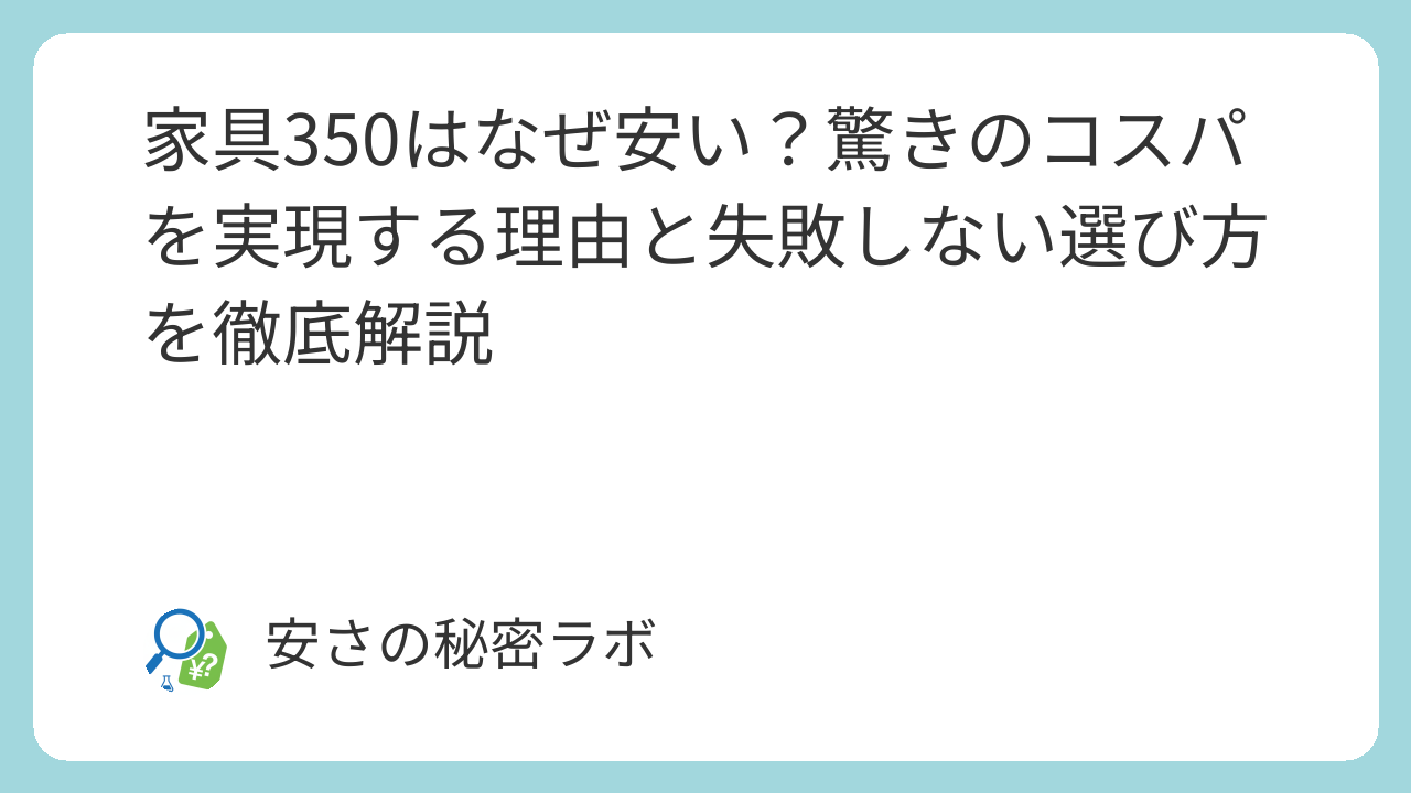 この記事では、家具350がなぜこれほどまでの低価格とデザイン性を両立できているのか、その裏側にある合理的な理由を詳しく解説します。安さの正体を正しく理解することで、納得感を持って賢く理想のお部屋作りができるようになりますよ。