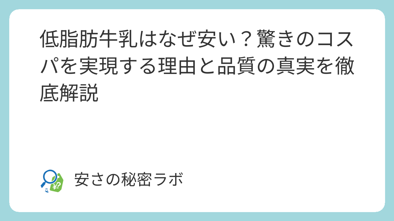 「いつもの牛乳を買おうとスーパーに行くと、低脂肪牛乳の方が安く売られている…」そんな経験はありませんか。健康のために脂質を控えたいという理由だけでなく、その手頃な価格に惹かれて手に取る方も多いはずです。しかし、あまりに安価だと「栄養が薄いのでは?」「何かが混ぜられているのでは?」と品質への不安を感じてしまうこともありますよね。