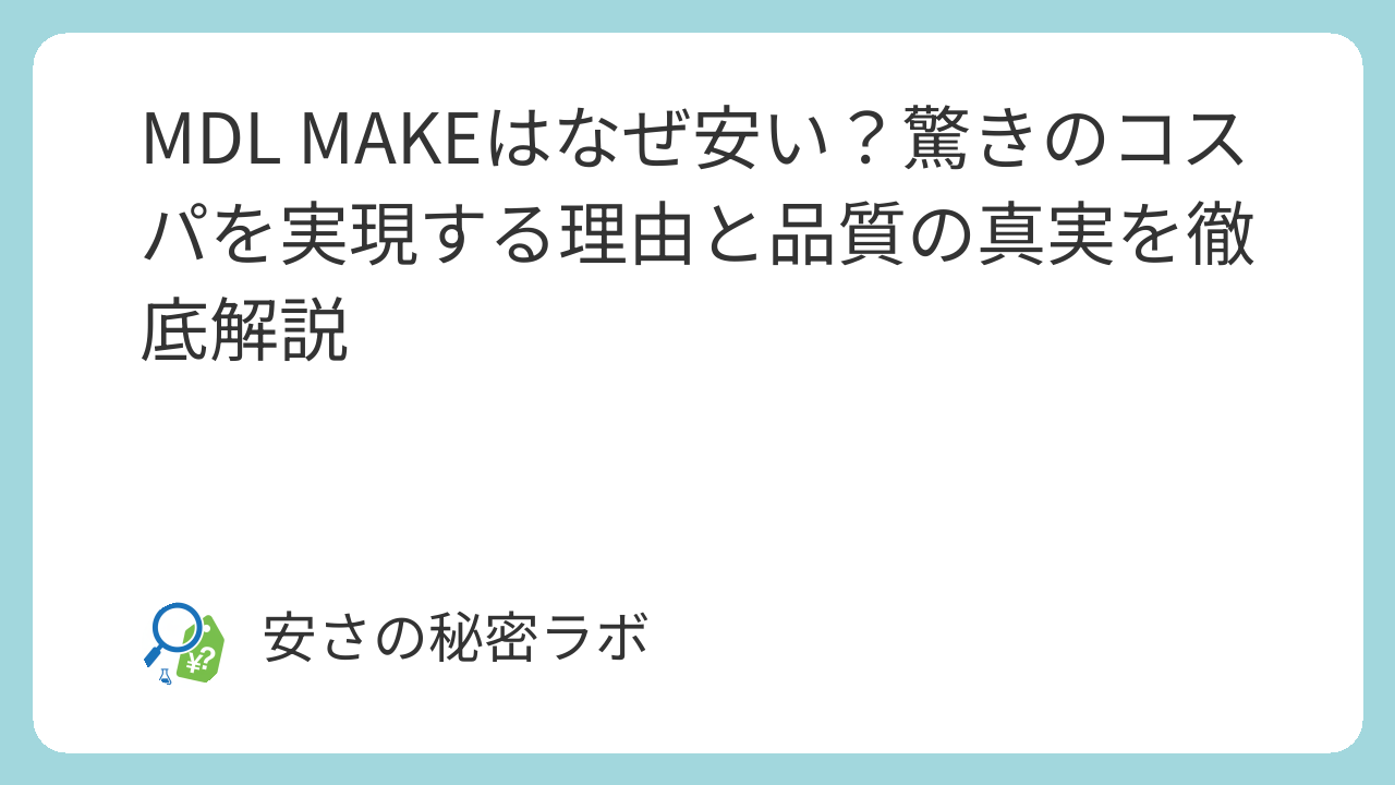 この記事では、MDL MAKEがなぜこれほどまでの低価格を実現できているのか、その裏側にある合理的な理由と品質の実態について詳しく解説します。安さの秘密を正しく理解すれば、納得して自分にぴったりのアイテムを選べるようになりますよ。