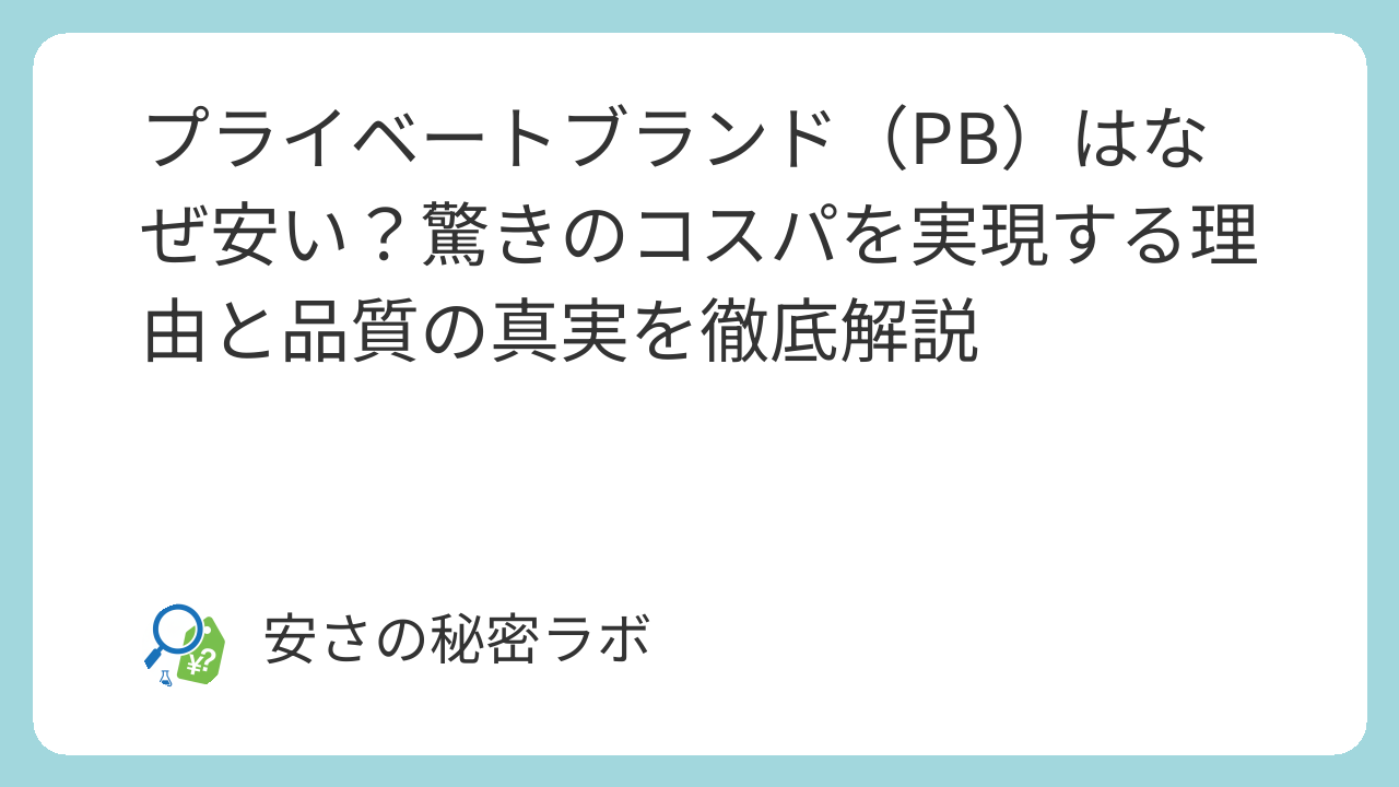 スーパーやコンビニの棚に並ぶ、独自ブランドの「プライベートブランド(PB)商品」。大手メーカーの有名商品と比べて驚くほど安く販売されているため、「なぜこんなに安いの?」「中身は粗悪な原材料を使っているのでは?」と疑問に感じたことはありませんか。
