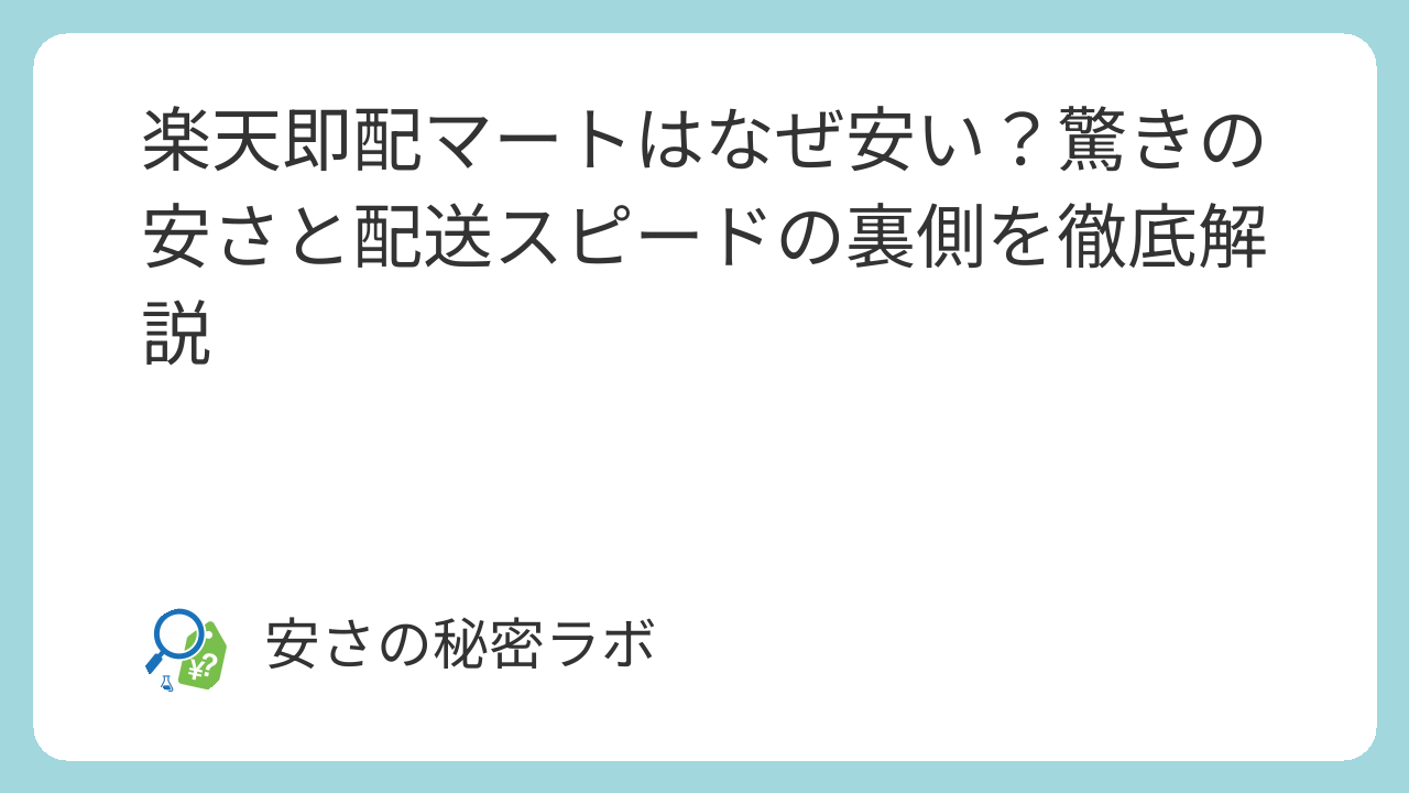 楽天即配マートはなぜ安い?驚きの安さと配送スピードの裏側を徹底解説