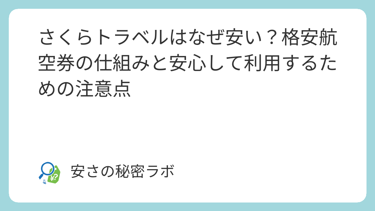 さくらトラベルはなぜ安い?格安航空券の仕組みと安心して利用するための注意点